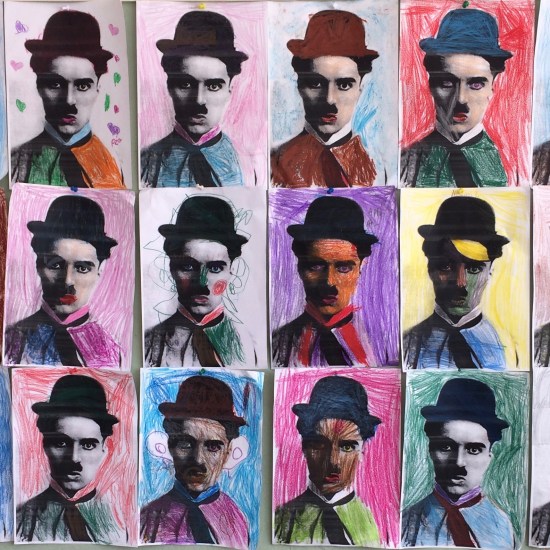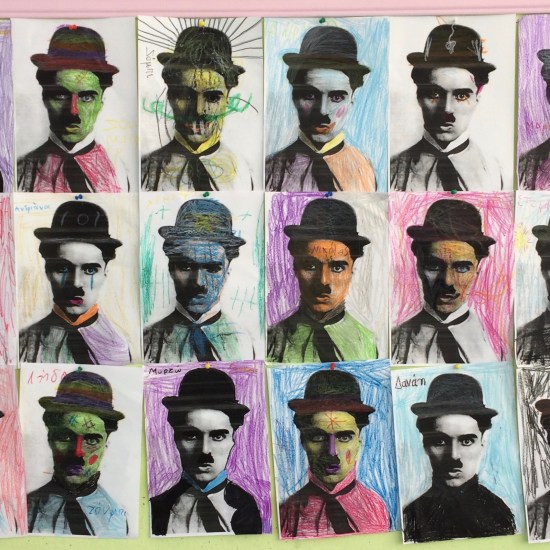 Με αφορμή μια φωτογραφία του Τσάρλι Τσάπλιν μιλήσαμε για τα πρόσωπα και τις διαφορετικές εκφράσεις τους στον κινηματογράφο. Στη συνέχεια, μεταμορφώσαμε μια φωτογραφία του Τσάρλι Τσάπλιν χρησιμοποιώντας κηρομπογιές. Επίσης, είδαμε τις προσωπογραφίες του Αντι Γουόρχολ και είπαμε λίγα πράγματα για το κίνημα της ποπ αρτ.