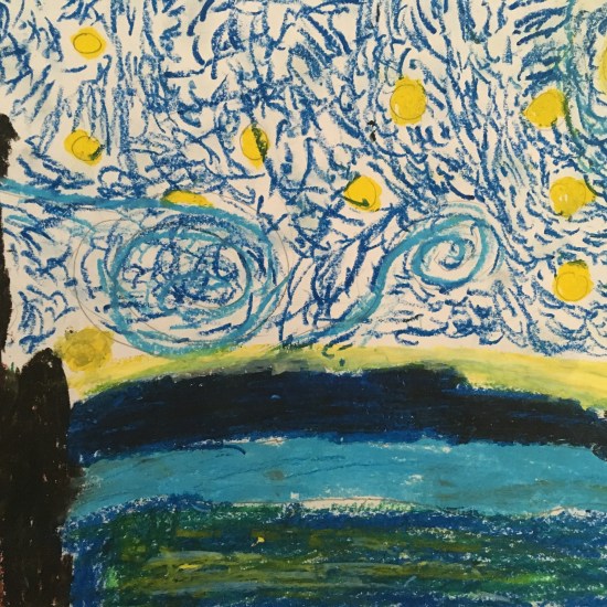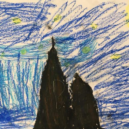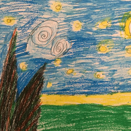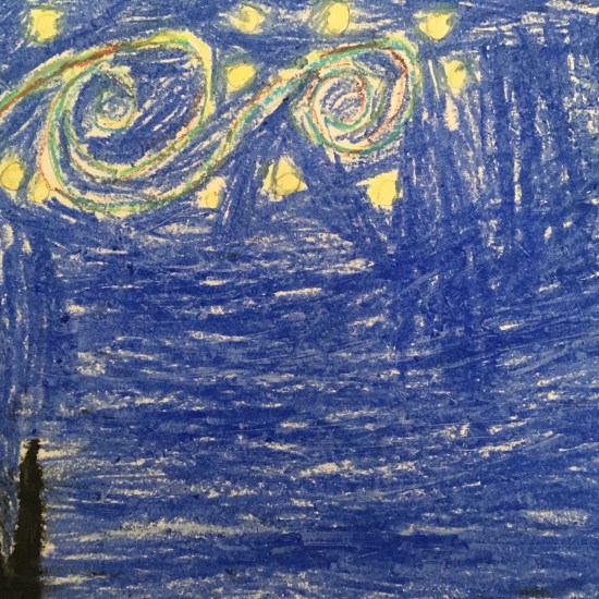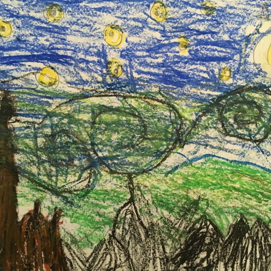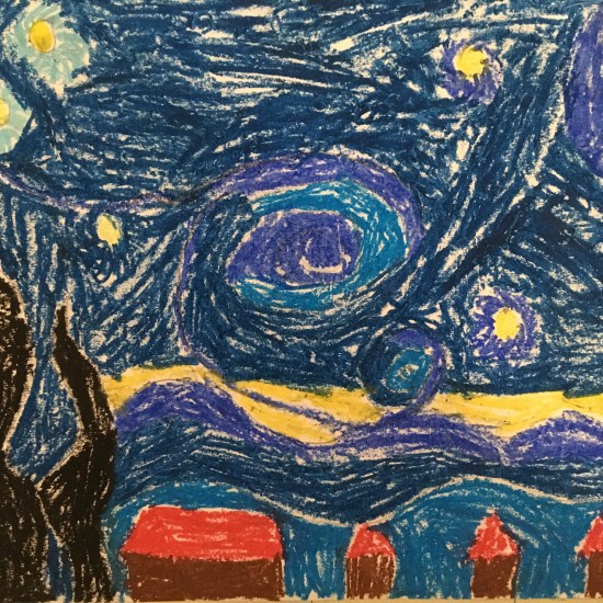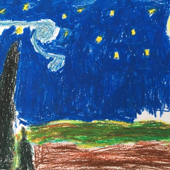 Μιλήσαμε για τη ζωή και το έργο του Βίνσεντ βαν Γκογκ και εστιάσαμε στον έργο του “Έναστρη νύχτα”. Στη συνέχεια, τα παιδιά ζωγράφισαν με λαδοπαστέλ τη δική τους εκδοχή της έναστρης νύχτας.