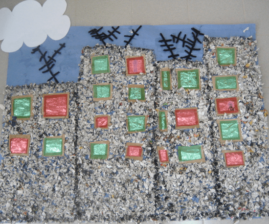 - Αν θέλεις μπορείς να πατήσεις με μαύρο μαρκαδόρο τα περιγράμματα των πολυκατοικιών.