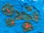 - Για τα φύλλα: φτιάξε μικρά μπαλάκια και πάτησέ τα σε διάφορα σημεία στη λίμνη σου.