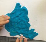 - Για τη λίμνη: διάλεξε τα χρώματα της πλαστελίνης που σου θυμίζουν λίμνη. Άπλωσε με το δάχτυλό σου κομμάτια πλαστελίνης στο χαρτί. Πίεσε την πλαστελίνη ώστε να απλωθεί σαν μπογιά σε όλη την επιφάνεια του χαρτιού.