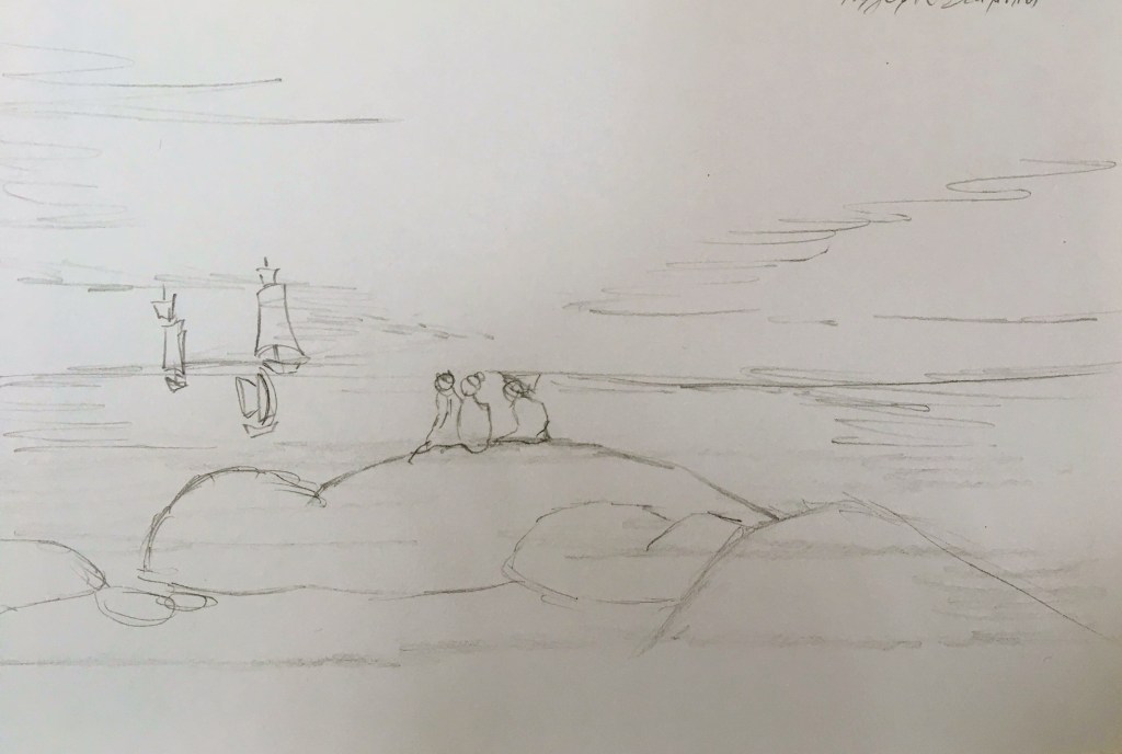 Τα βράχια, στο πρώτο επίπεδο αυτού του έργου, συμβολίζουν την πίστη. Τα καράβια, ιδίως αυτό με τα ανοιχτά πανιά, συμβολίζουν τη ζωή που φεύγει, ενώ το φεγγάρι που ανατέλλει συμβολίζει τον Χριστό. Η συμμετρία του πίνακα και η στατικότητα των στοιχείων στοχεύουν στην έξαρση των θρησκευτικών συναισθημάτων.