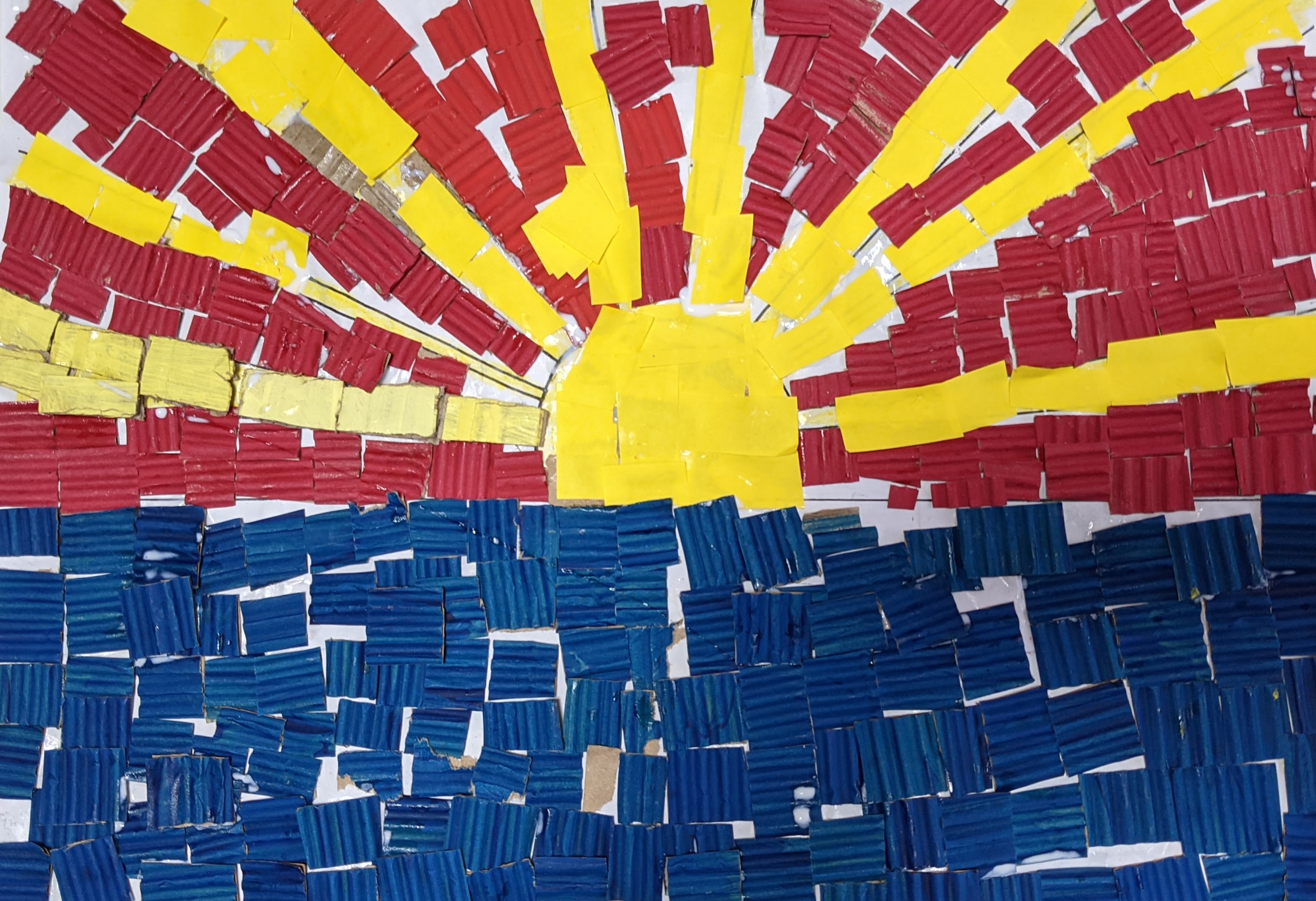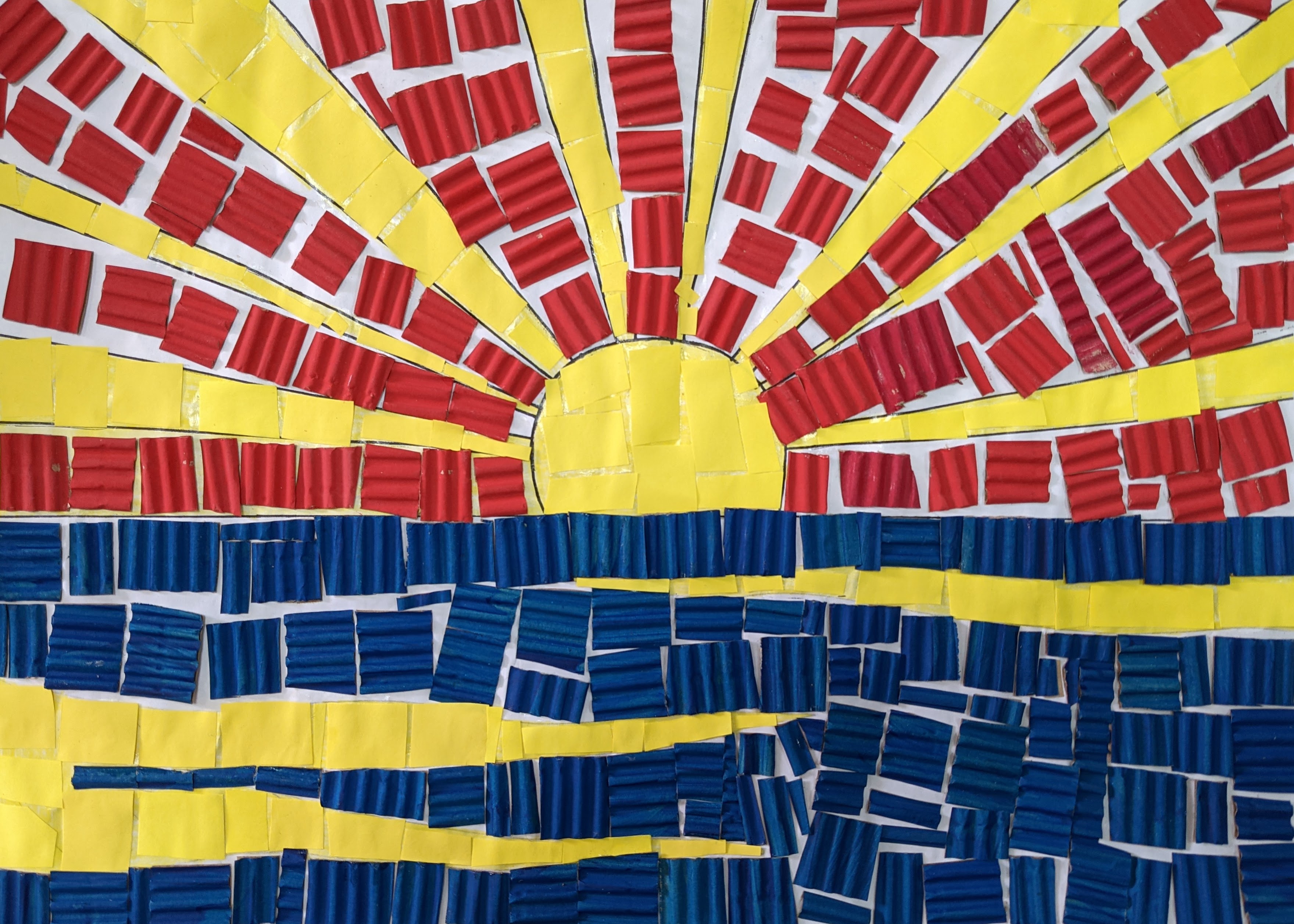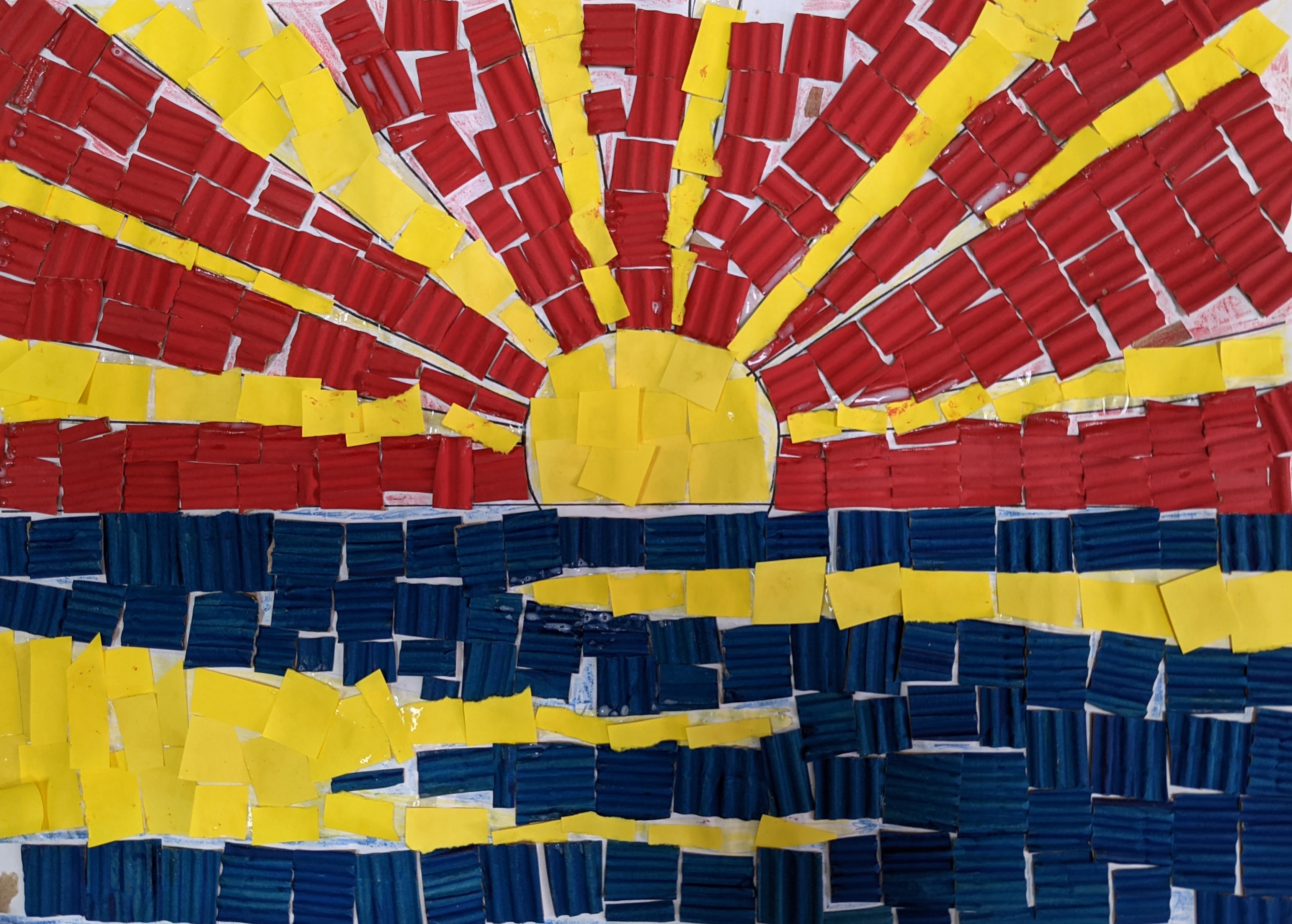 δημιουργήσαμε κολλάζ με χαρτάκια από χρωματιστά χαρτόνια canson και οντουλέ (τα οποία είχαμε προηγουμένως χρωματίσει με τέμπερες).
