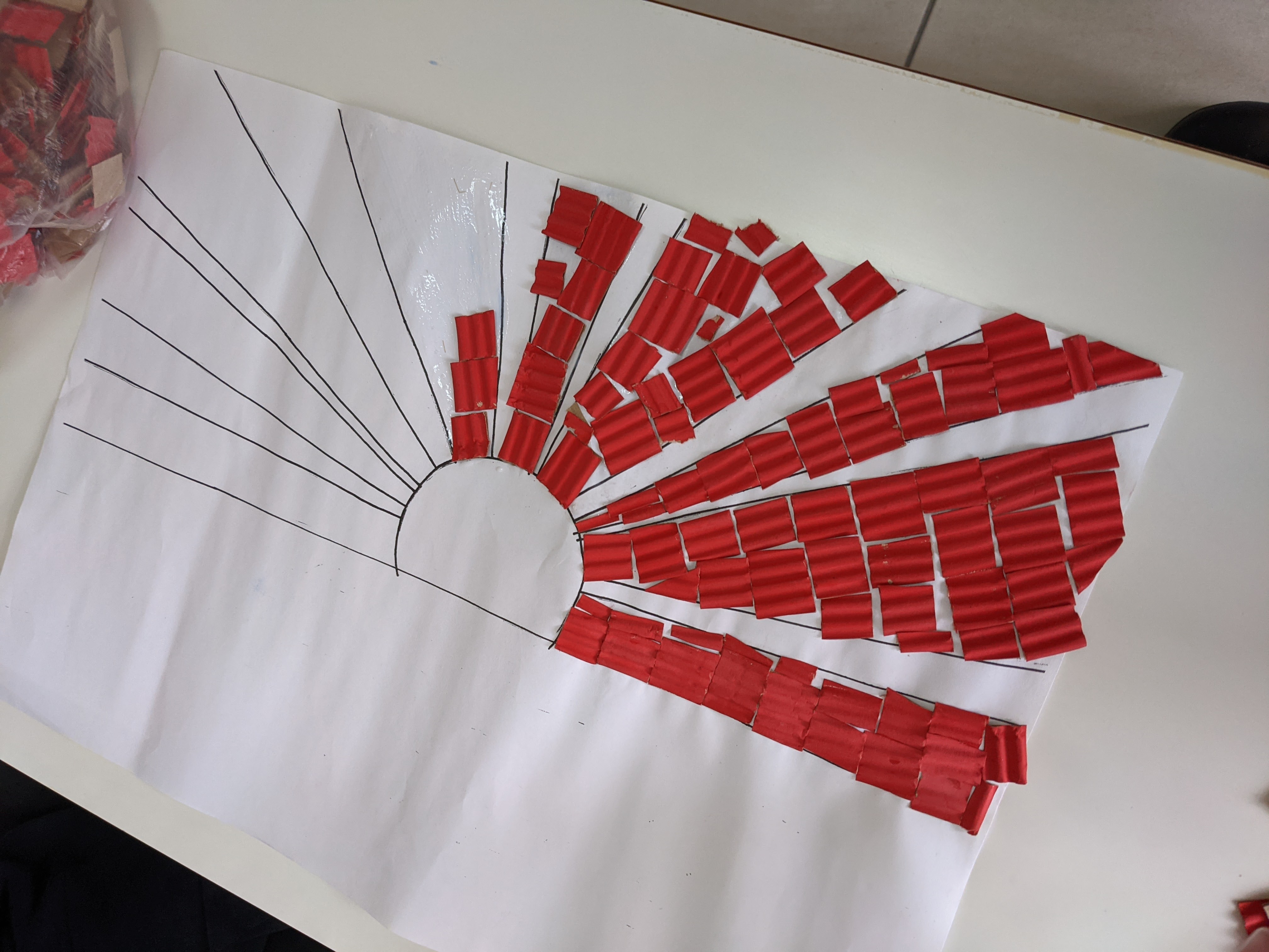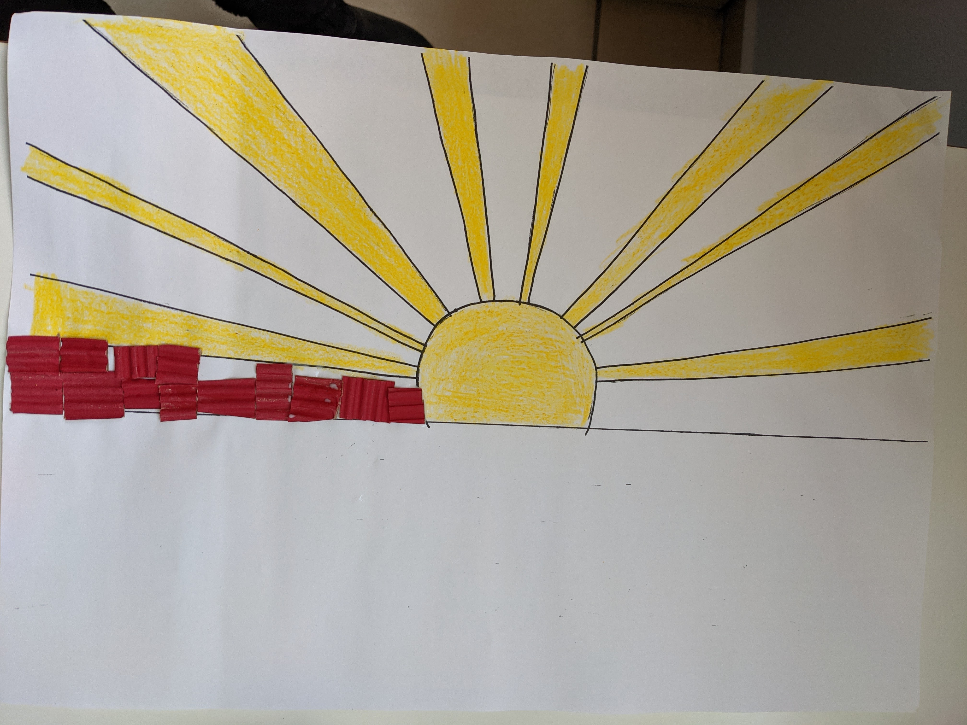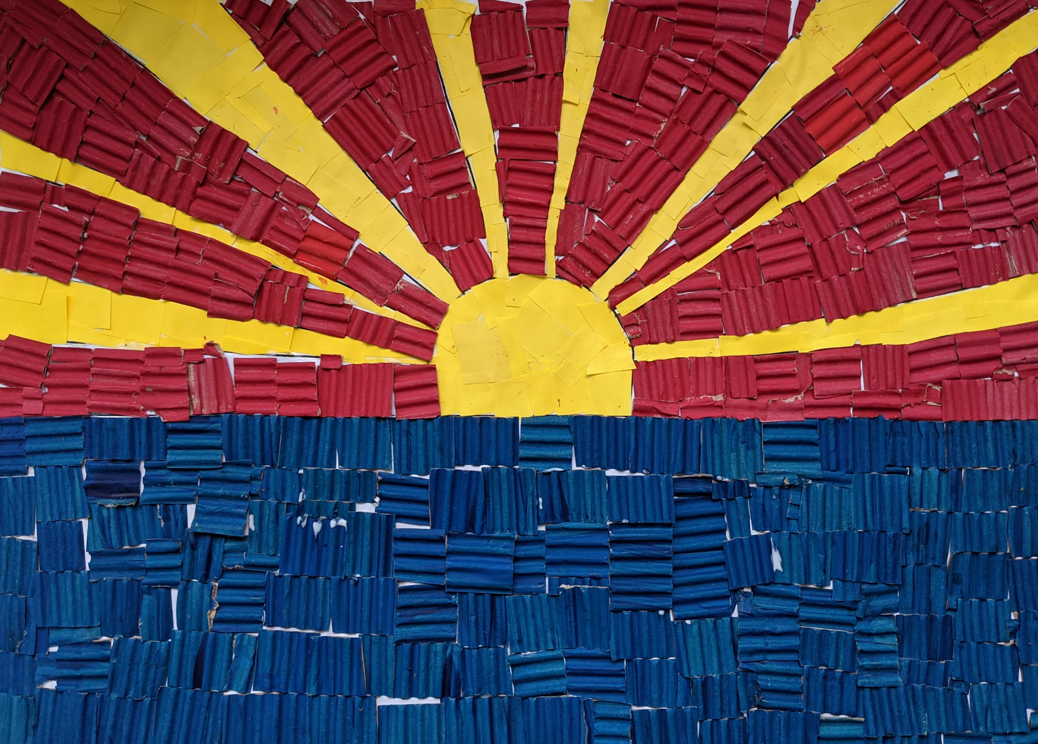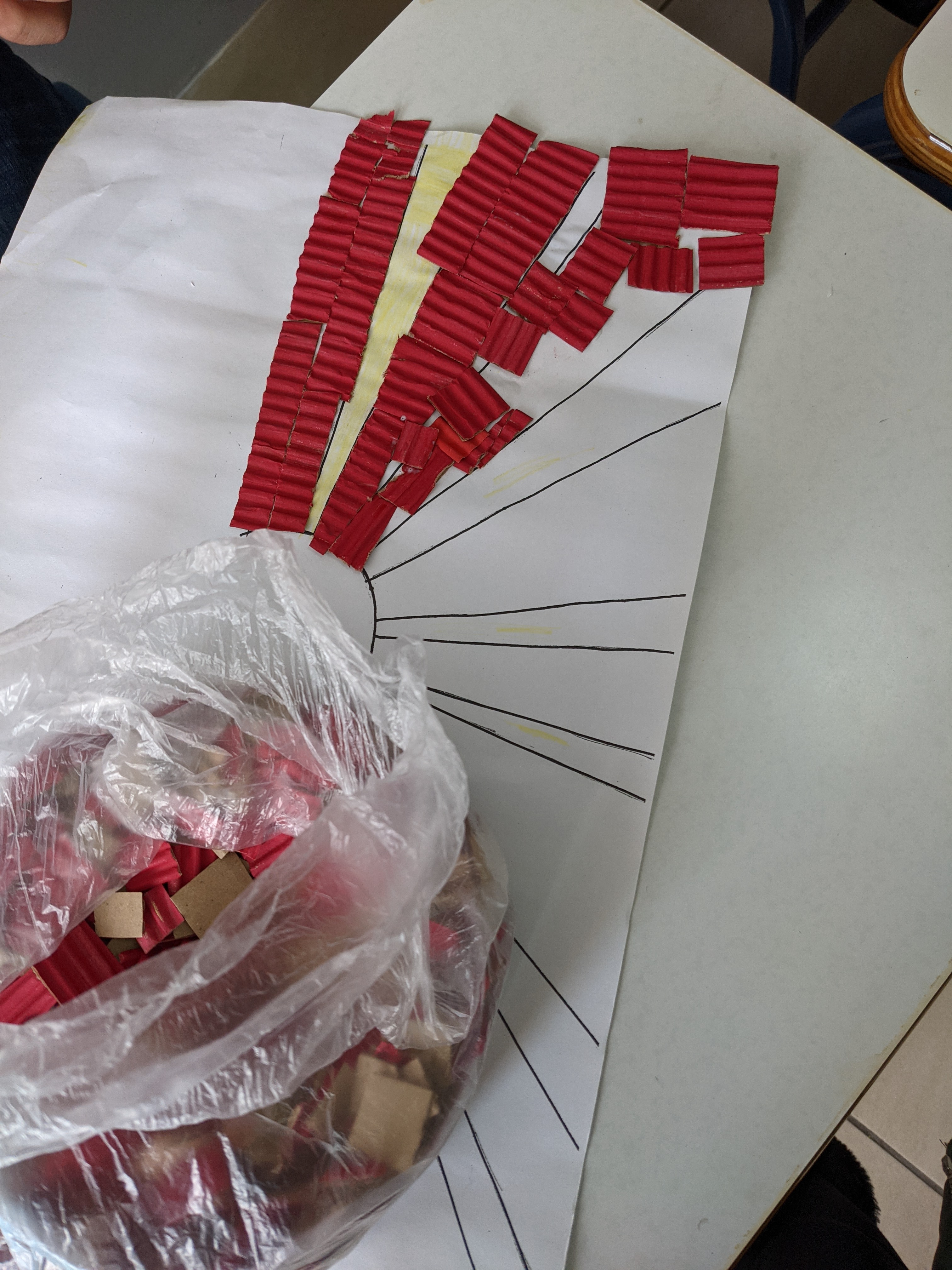 δημιουργήσαμε κολλάζ με χαρτάκια από χρωματιστά χαρτόνια canson και οντουλέ (τα οποία είχαμε προηγουμένως χρωματίσει με τέμπερες).