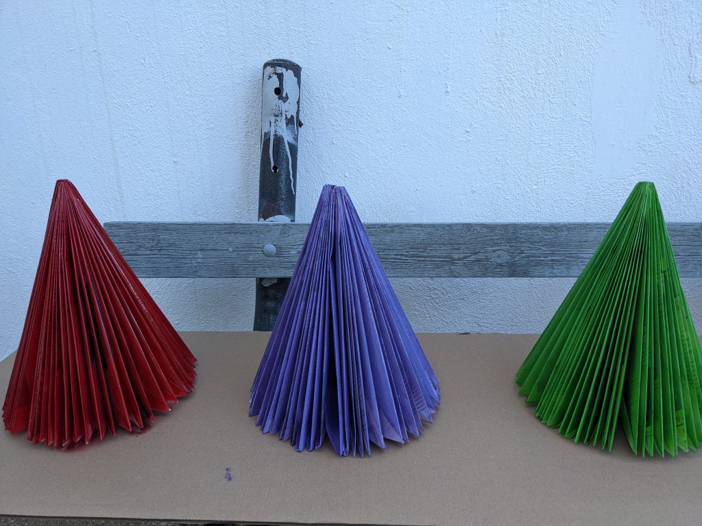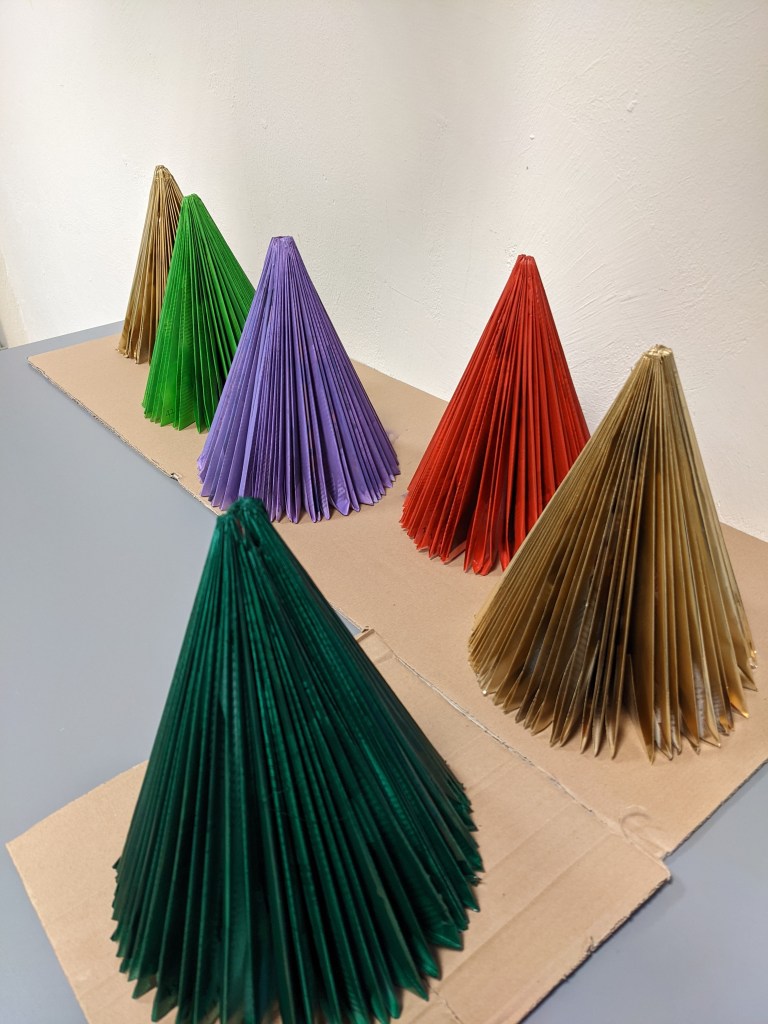 Μάθαμε πως μπορούμε να κατασκευάσουμε ένα χριστουγεννιάτικο δέντρο διπλώνοντας ένα περιοδικό. Για πιο πυκνά δέντρα χρησιμοποιήσαμε 2 περιοδικά τα οποία κολλήσαμε μεταξύ τους.