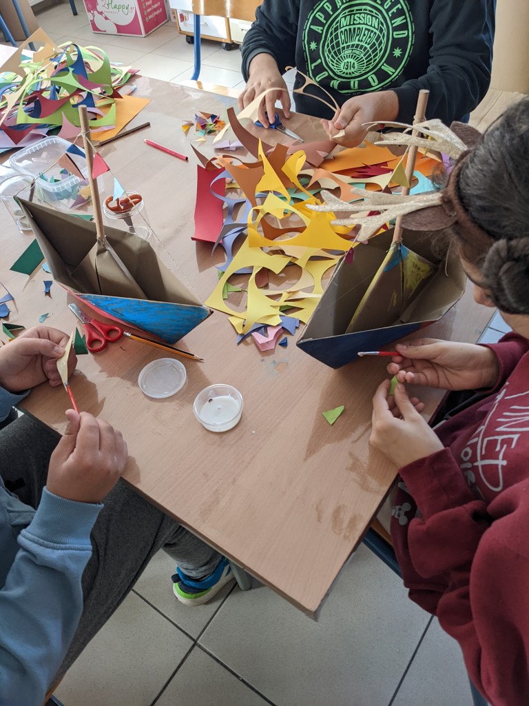 *Η δραστηριότητα αυτή έγινε στο πλαίσιο προγράμματος που υλοποιείται με τη συνεργασία των εκπαιδευτικών της Γλώσσας (Ράνια Στρατάκη) και των Καλλιτεχνικών (Κατερίνα Ζερβού) με θέμα: το ταξίδι και τη θάλασσα, τα καράβια και τη ναυσιπλοΐα, την επικοινωνία και τις μεταφορές, τους ανθρώπους και τις αναμνήσεις. Οι μαθητές παρακολούθησαν βίντεο με την ιστορία του επιβατηγού Νεράιδα, πραγματοποίησαν εκπαιδευτικά παιχνίδια και δραστηριότητες, συνδέθηκαν ζωντανά με το Πλωτό Μουσείο Νεράιδα αλλά και ξεναγήθηκαν, δια ζώσης, στους χώρους του. Τέλος, γνώρισαν τα ήθη και τα έθιμα του τόπου μας και πιο συγκεκριμένα το στολισμό του καραβιού ως μια παλιά ελληνική χριστουγεννιάτικη παράδοση.