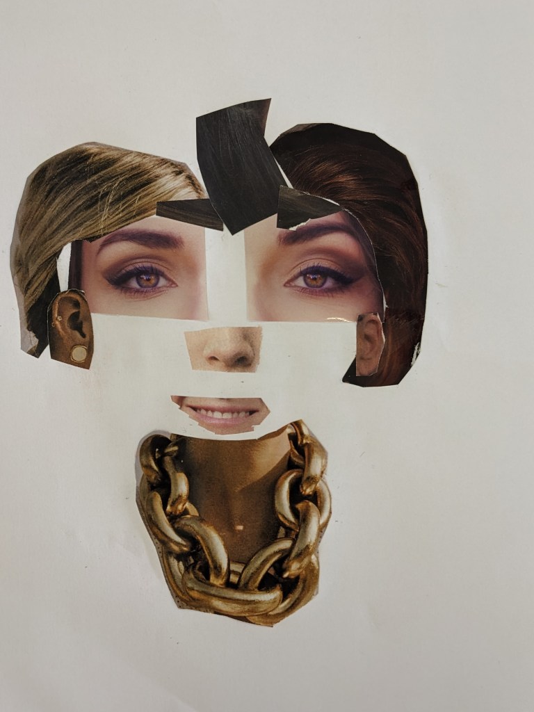 Δημιουργήσαμε ευφάνταστα πορτρέτα* με την τεχνική του κολάζ**! Αναζητήσαμε και κόψαμε από περιοδικά τα στοιχεία ενός προσώπου (μάτια, μύτη, στόμα κ.τ.λ.). Τα τοποθετήσαμε σε ένα χαρτί και τα μετακινήσαμε έτσι ώστε να σχηματιστεί ένα πρόσωπο. Τέλος, κολλήσαμε τα κομμάτια και ιδού το αποτέλεσμα!