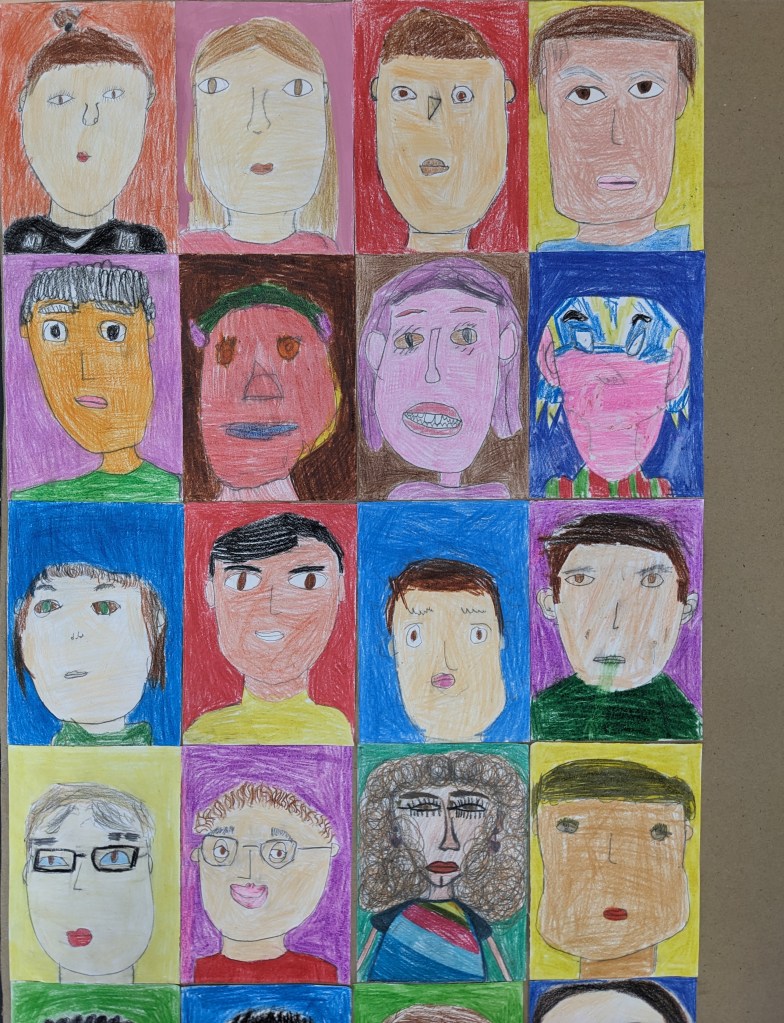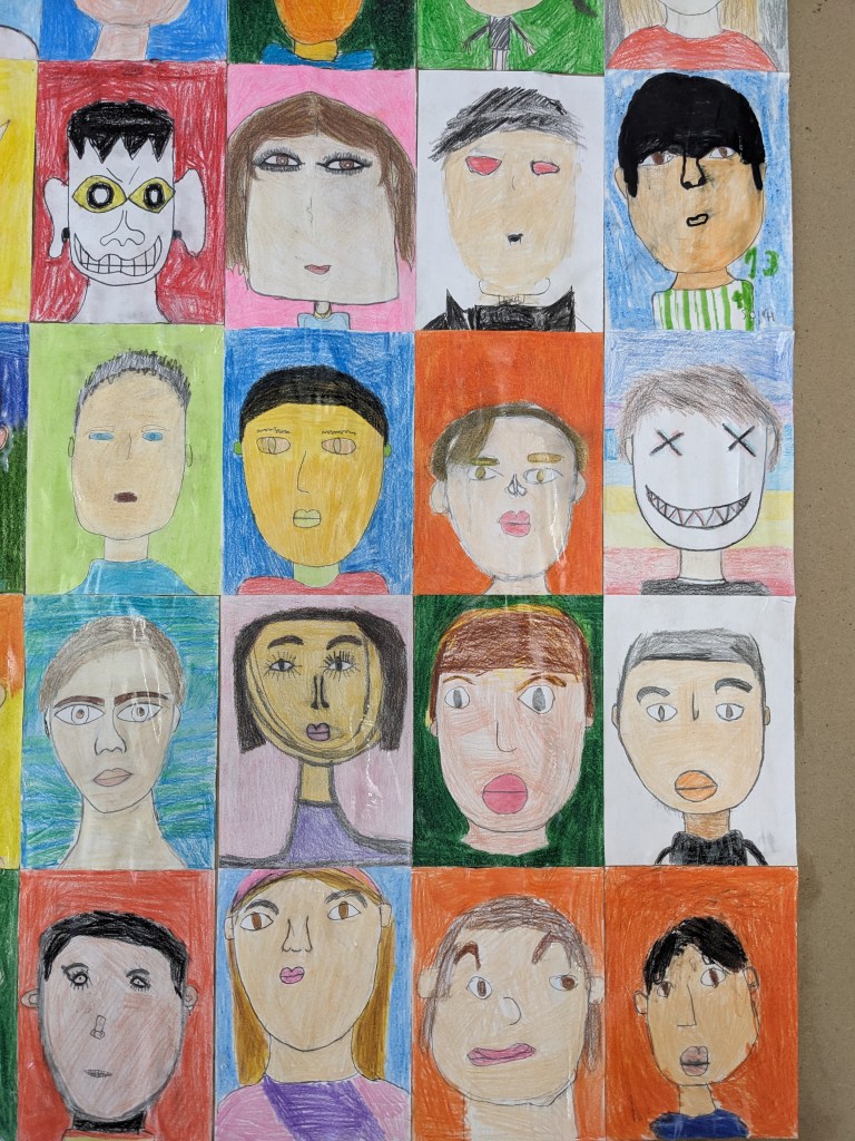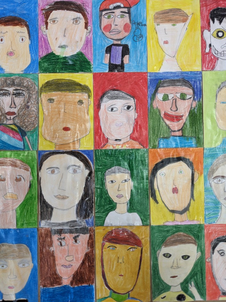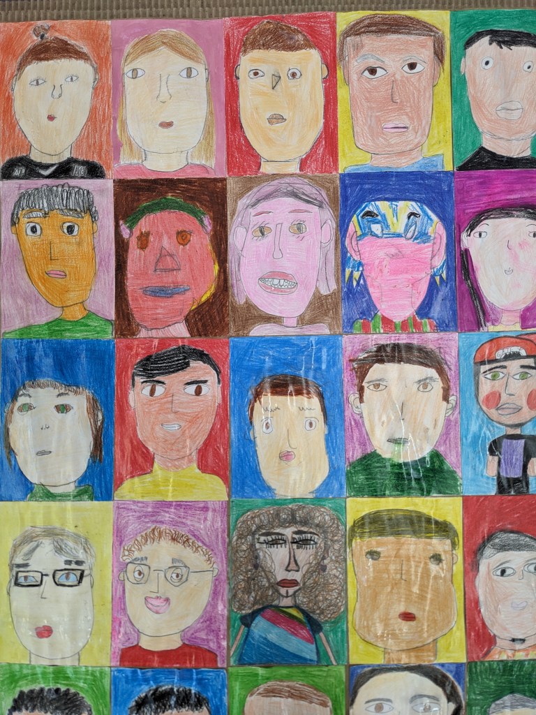 Εξηγήσαμε τι είναι η προσωπογραφία/πορτρέτο και παρατηρήσαμε τα πρόσωπα των συμμαθητών μας: το σχήμα του κεφαλιού, τη μύτη, τα μάτια, το στόμα. Σχεδιάσαμε τα μαλλιά χωρίς να ξεχνάμε το σχήμα του κεφαλιού και τοποθετήσαμε τα αυτιά αφού παρατηρήσαμε που βρίσκονται σε σχέση με τα μάτια. Χρωματίσαμε με ξυλομπογιές και νερομπογιές γεμίζοντας το χαρτί μας με χρώμα.
