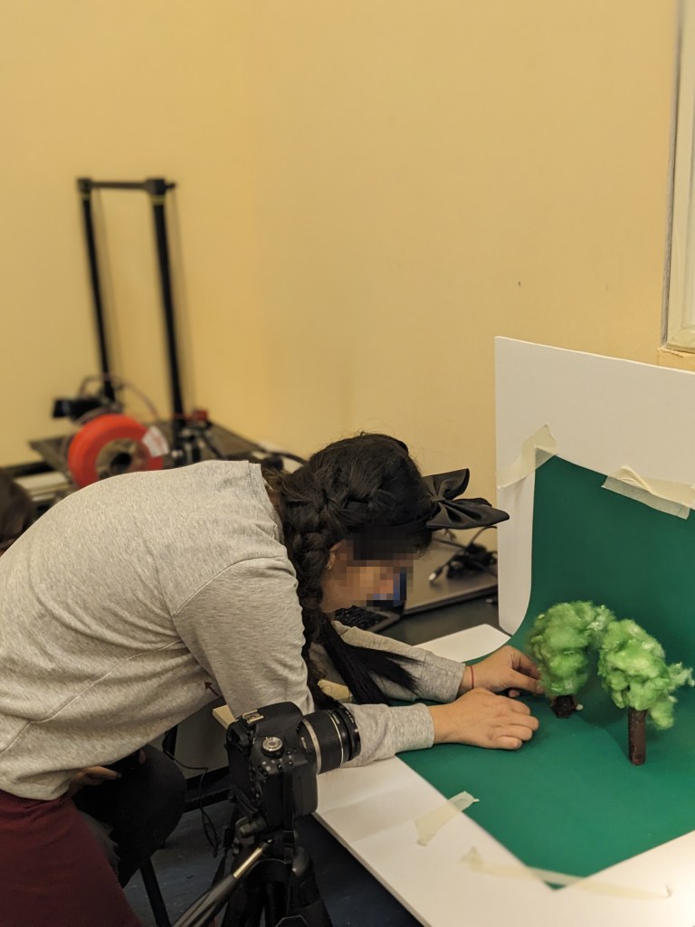 Οι μαθητές γνώρισαν την τεχνική της κινούμενης εικόνας (stop motion animation), την τεχνική που χρησιμοποιείται έτσι ώστε ακίνητα αντικείμενα να μοιάζουν ότι κινούνται. Αρχικά, δημιούργησαν σύντομα βίντεο για την κατανόηση της συγκεκριμένης τεχνικής χρησιμοποιώντας την εφαρμογή stop motion studio (οδηγίες για την εγκατάσταση και τη χρήση της δωρεάν εφαρμογής εδώ). Στη συνέχεια, έγραψαν το σενάριο και έφτιαξαν προσχέδια των σκηνικών και των ηρώων τα οποία πήραν μορφή με πλαστελίνη και άλλα υλικά. Τέλος, έγινε η φωτογράφιση καρέ καρέ με το πρόγραμμα Dragonframe και η ταινία πήρε την τελική της μορφή.