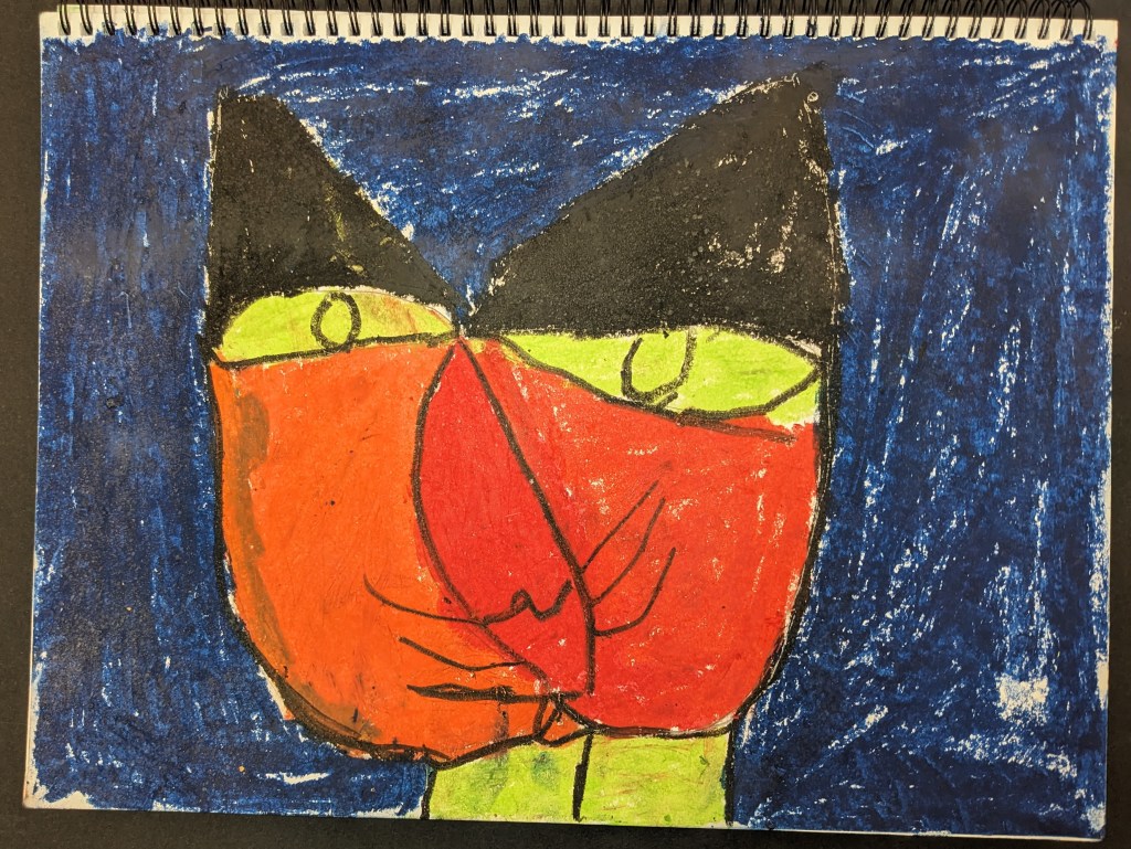 Με αφορμή το έργο του Κλέε «Η γάτα και το πουλί» γνωρίσαμε τον σπουδαίο αυτόν καλλιτέχνη και τα έργα του. Ακόμη, συζητήσαμε για τις γραμμές, τα σχήματα και τα χρώματα. Μιλήσαμε για τα συναισθήματα που προκαλεί ο πίνακας και για το τι κρύβεται στο μυαλό της γάτας. Με απλές γραμμές σχεδιάσαμε την γάτα του Κλέε (drawing steps for cat and bird) και την χρωματίσαμε με λαδοπαστέλ. Τέλος, παρακολουθήσαμε το βίντεο «Χρωματοϊστορίες-Klee» και γνωρίσαμε έννοιες όπως η υφή και ο ρυθμός. Μάθαμε επίσης πως ο Κλέε συχνά μεταχειρίζεται τα χρώματα σαν τους ήχους της μουσικής!